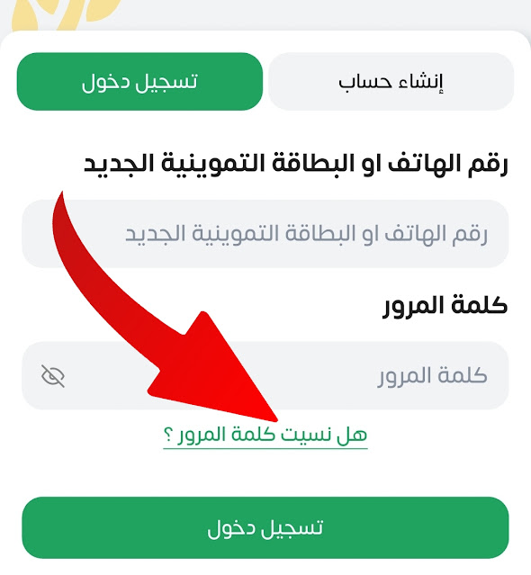ملاحظة في حال فقدان الرسالة أو نسيان كلمة السر يمكن اضغط على كلمة هل نسيت كلمة المرور وإضافة رقم الهاتف الذي تم التسجيل بالتطبيق سابقا وضغط على التالي سوف تستلم كلمة سر جديدة . هذه الخطوة في حال نسيان كلمة السر.
